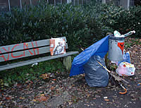 ist voller Abfall, Hundekot und Pferdeäpfel. Das Abbruchmobiliar,