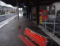 nur sporadisch und auf Anfrage erhältlich (oranger Kasten am Perron;